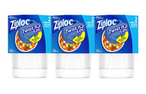 Amazon is running a 25% off on the 6 pack of taller Ziploc Twist ‘n Loc Containers, bringing the cost down to $1.32 each for the 16 oz taller containers. The 9 pack of the shorter Twist ‘n Loc models is only $0.88 each. Both sizes use the same lids, are great for storage in “meal size” units and are lightweight “bowl” portable containers.